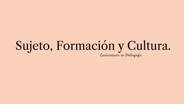 Sujeto, Formacion Y Cultura